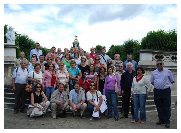 El miércoles, tras desayunar “opíparamente” vamos a una ciudad llamada Postdan, importante, pues en ella celebraron una reunión: Churchill, Truman y Stalin y decidieron la suerte de Alemania en 1945; pasamos por el puente de los espías (nos fotografiamos) y visitamos un palacio, Sans Soucci (sin Problemas, es la traducción) y el que vivió en él, Federico II, no los tendría, bonito y grande, con jardines, estatuas y hasta las tumbas de sus perros, curioso ¿eh?